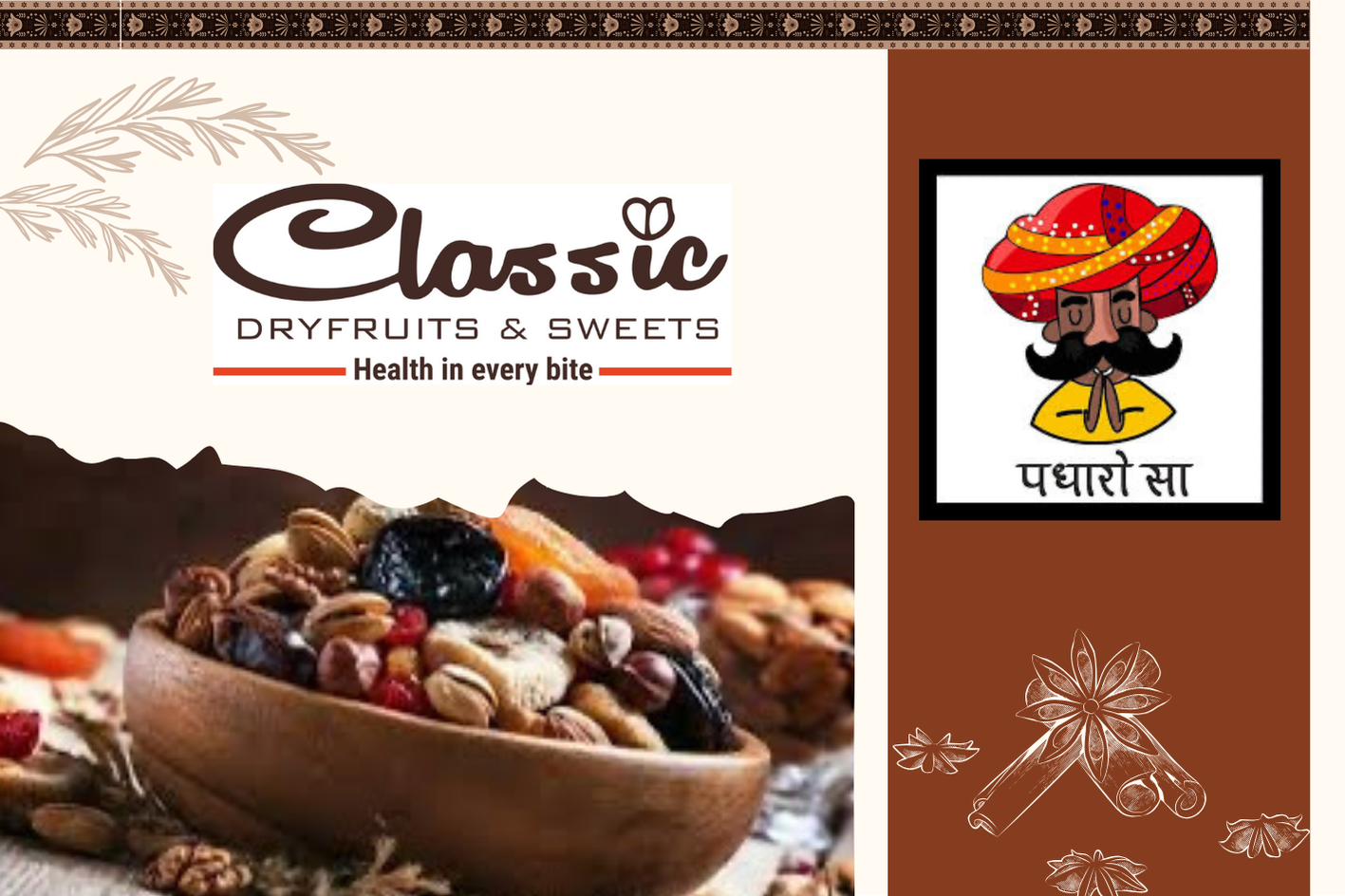 "Welcome to Classic Dry Fruits, your premier destination for premium dry fruits, sweets, and farsan in Kharghar, Navi Mumbai. Since 2013, we've been serving the community with the finest quality products, carefully sourced and curated to meet the highest standards.